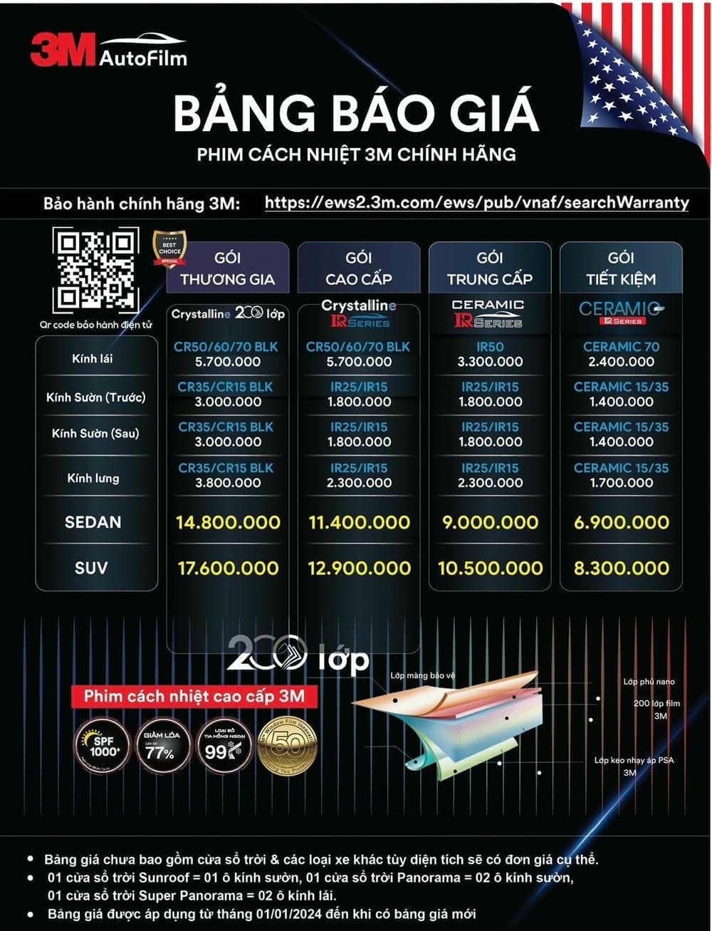 Lưu ý: Phim cách nhiệt 3M bị làm nhái rất nhiều, giá cả rất rẻ. Quý khách hàng nên chọn đơn vị uy tín đã có tên tuổi để thi công nhằm bảo đảm chất lượng.