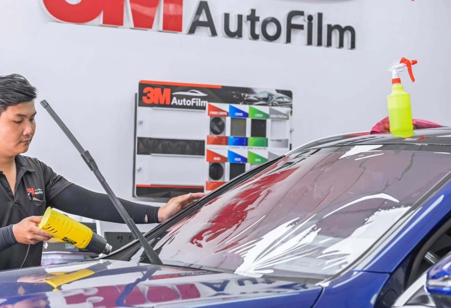 Trước khi dán phim, bạn cần làm sạch kính xe kỹ càng để đảm bảo bề mặt kính không có bụi hay dấu vết. Bạn có thể sử dụng nước và xà phòng để rửa kính hoặc sử dụng dung dịch làm sạch đặc biệt cho kính ô tô.