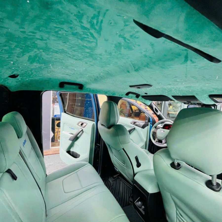 Để thêm phần tinh tế và sang trọng cho không gian nội thất trong xe, bọc trần da lộn cho gói đổi màu nội thất xe Ranger. Da lộn mang đến sự đặc biệt và cảm giác mềm mại cho trần xe ô tô. Sử dung các tông màu đông màu với các chi tiết khác sẽ giúp tăng thêm giá trị thẩm mỹ cho không gian nội thất cho xế yêu của bạn.